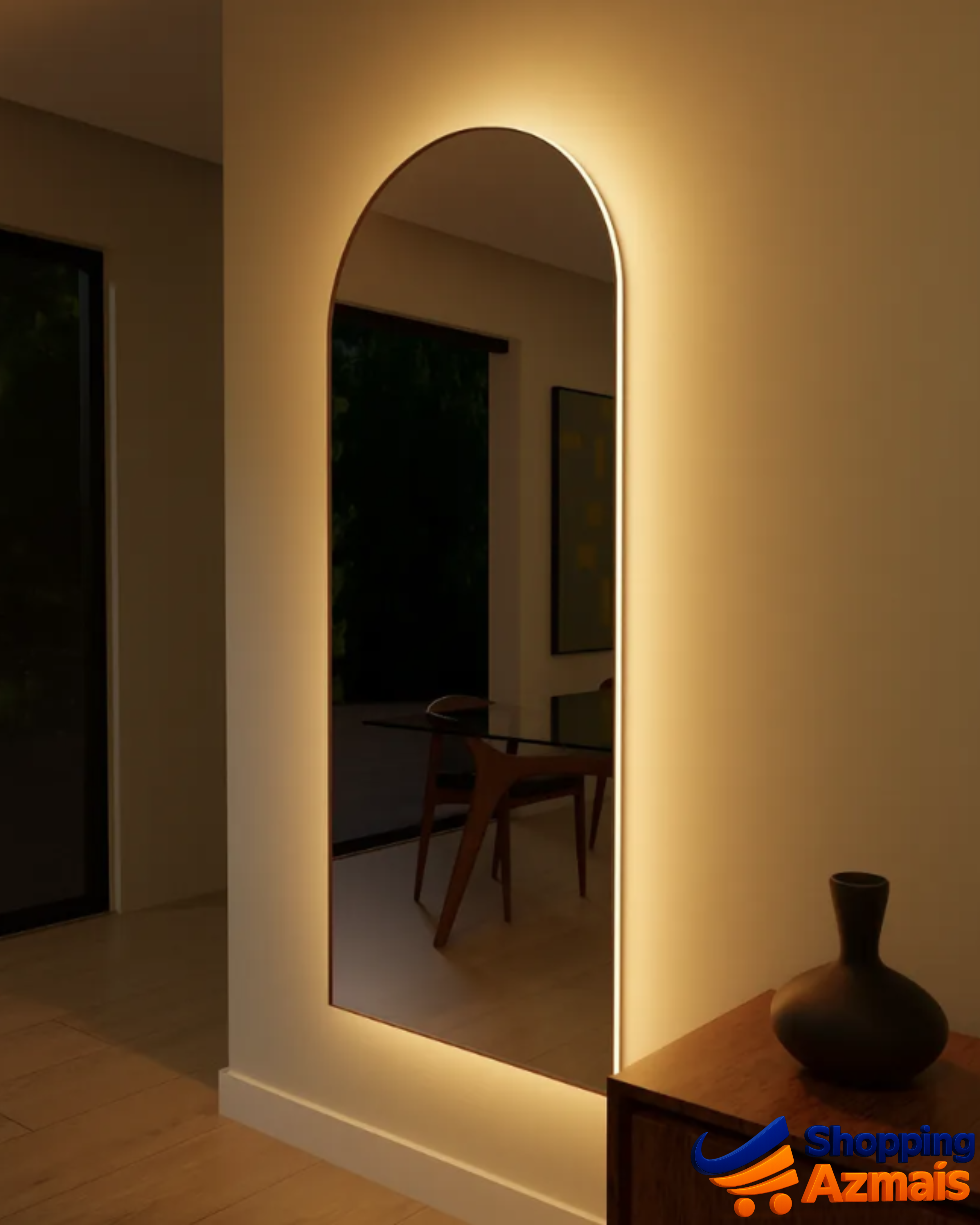 Espelho Retangular 180x90 Jateado 4mm Com Led 3 Cores