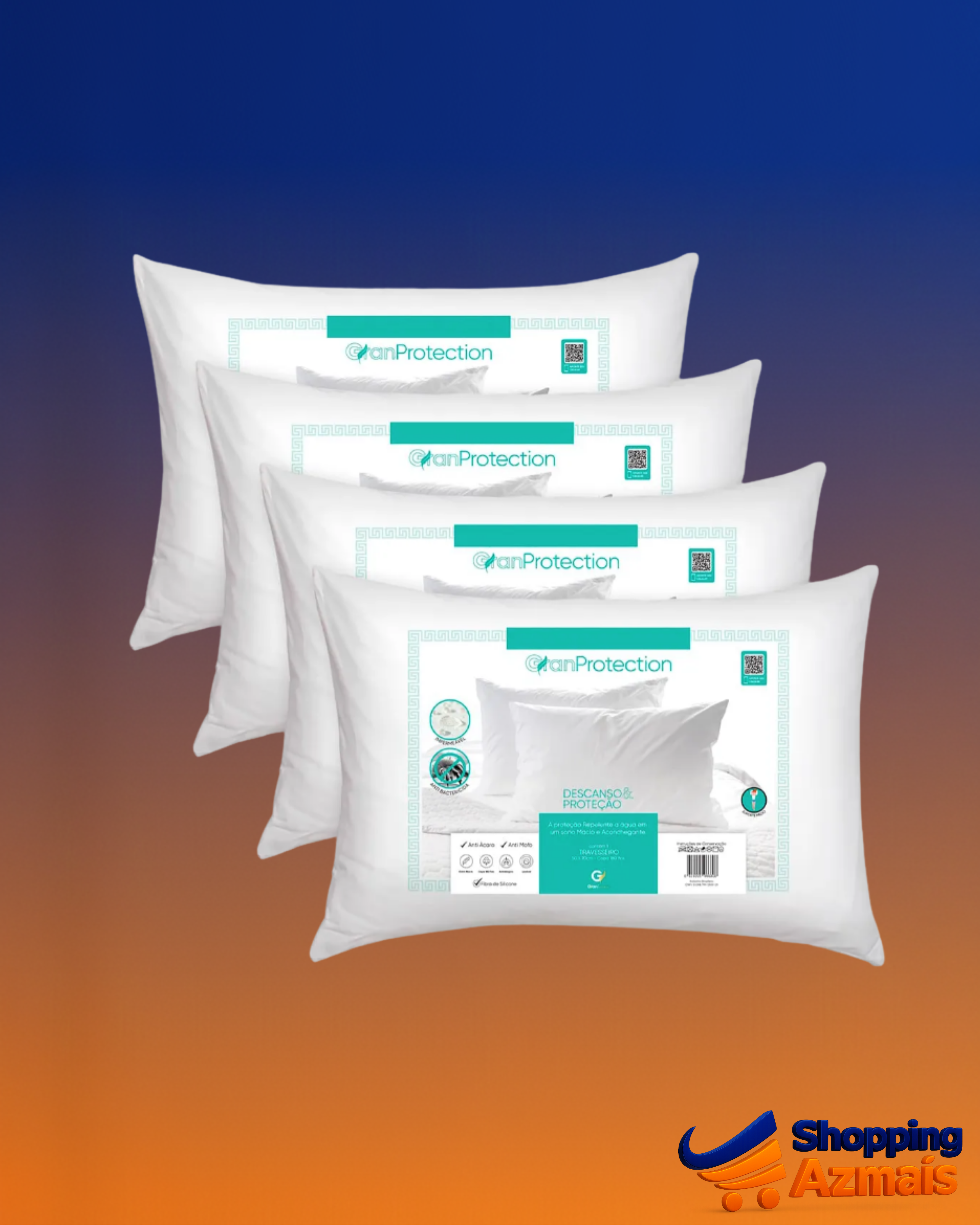 4 Travesseiros Impermeável Antialérgico 50x70 Suporte Medio